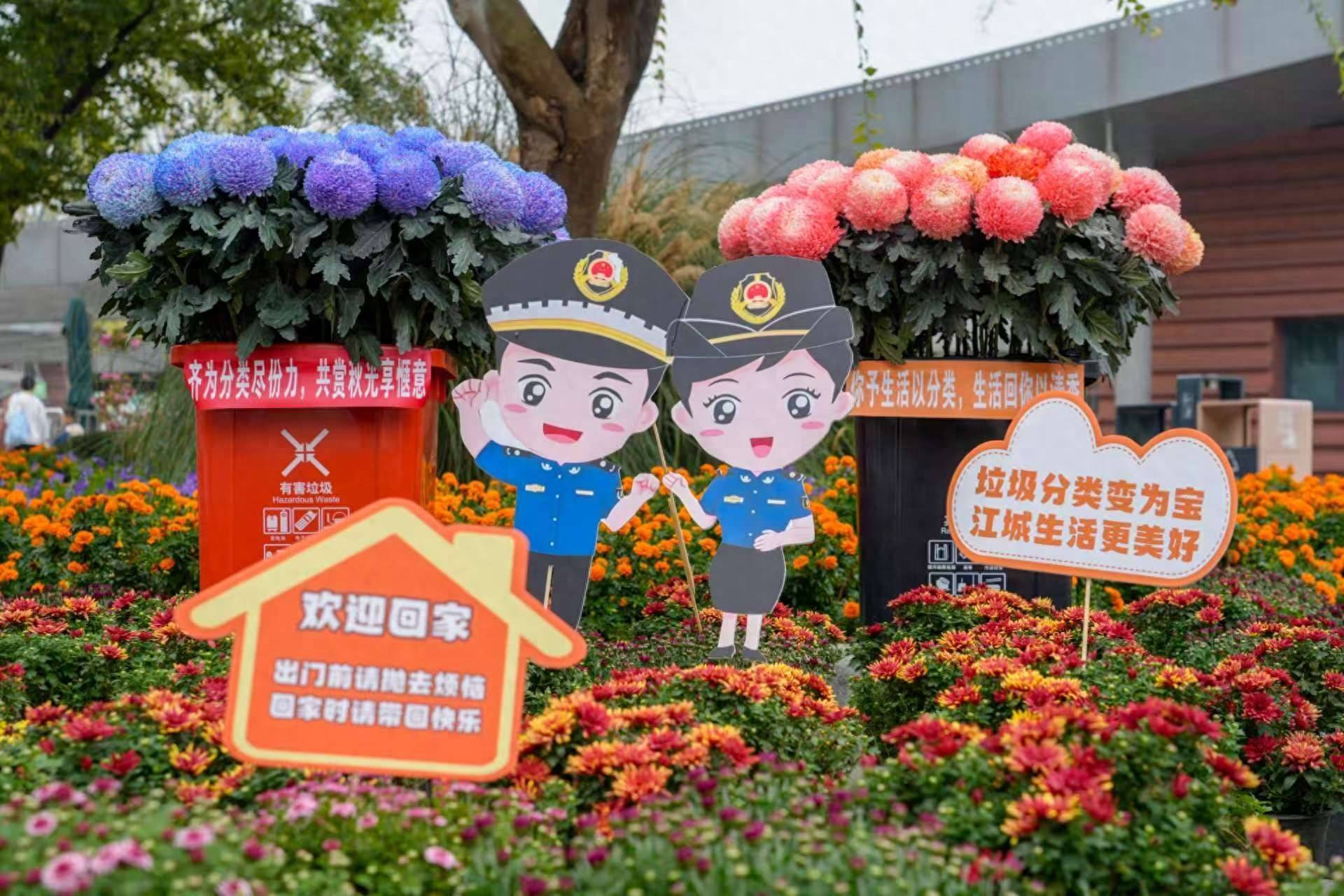 武汉市第42届金秋菊展正如火如荼举行,武汉动物园展区以“菊+动物”的特色布局,成为市民游客打卡的热门地点。11月1日上午,汉阳区城管执法局生活垃圾分类专班联合五里墩街道公管办、五丰里社区,在该展区开展“菊香伴分类,绿色新风尚”主题宣传活动,传递垃圾分类知识,推动环保理念深入人心。